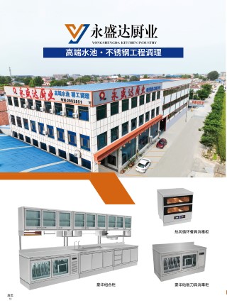 永盛达厨业 Y O N ( ; S l1E 、 G l)A KI.l CH I·;N INDliSTR,. 高端水池·不锈钢工程调理 1 I 热风循环餐具消毒柜 豪华组合柜 豪华祜板刀具消毒柜 罪页 11